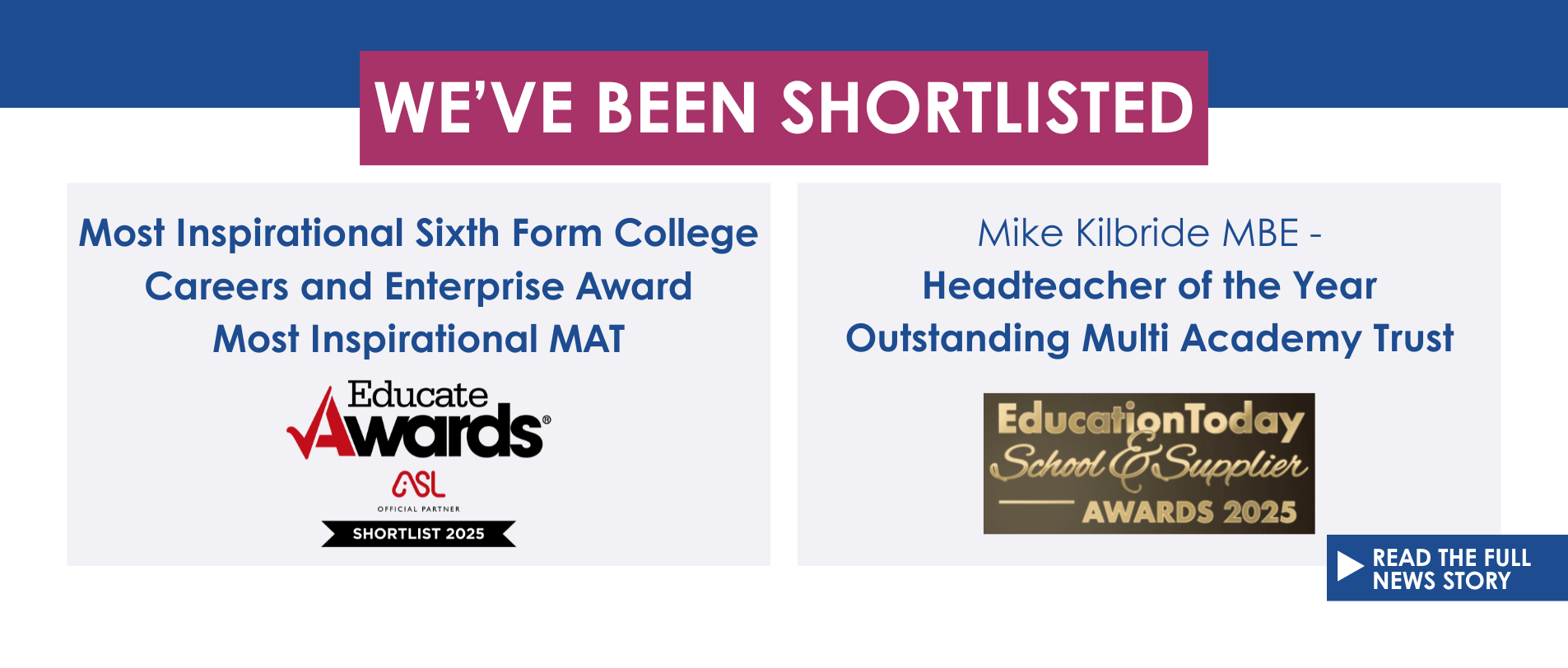 Birkenhead Sixth Form College and BePART Educational Trust Shortlisted for National Education Awards