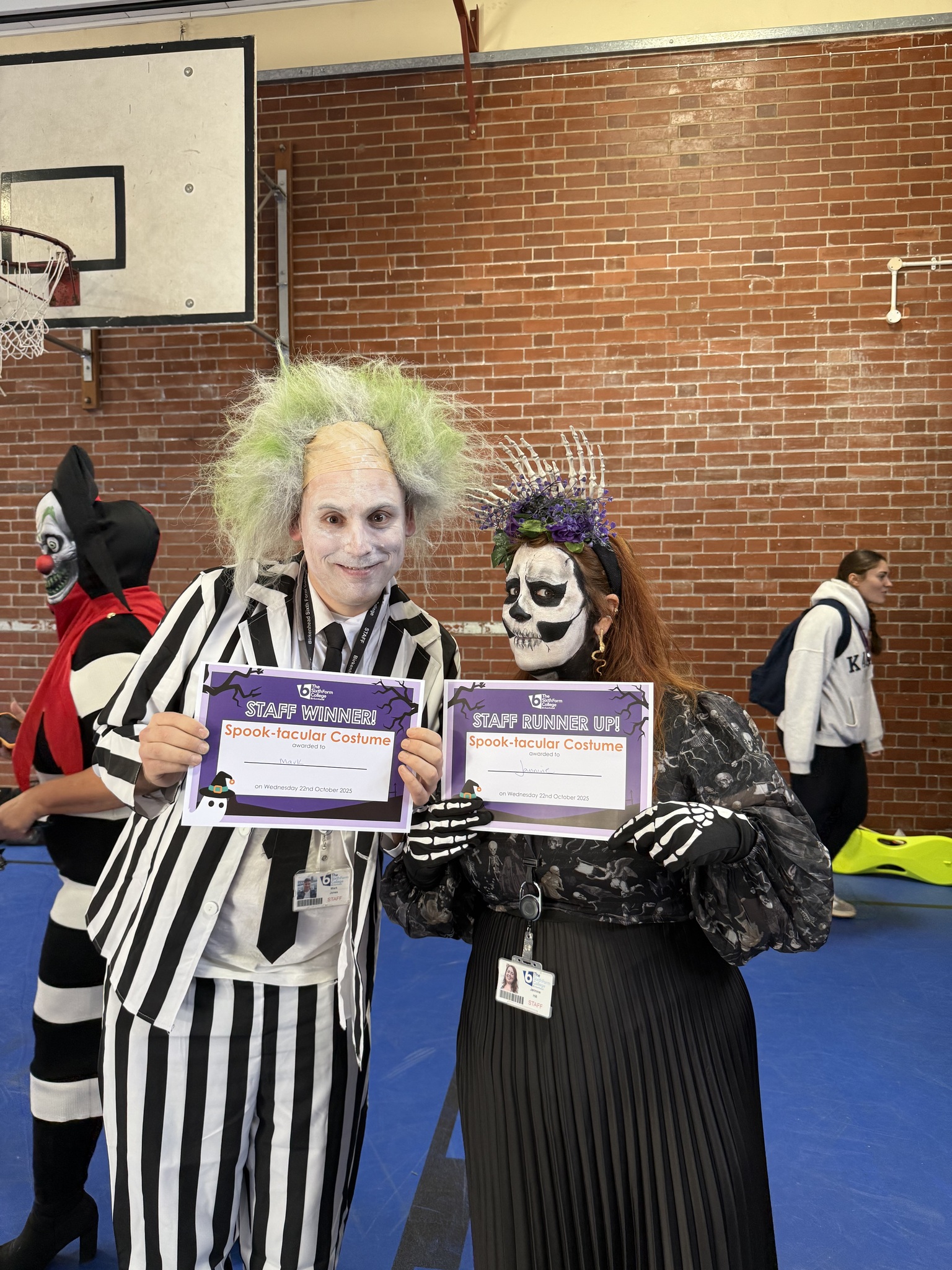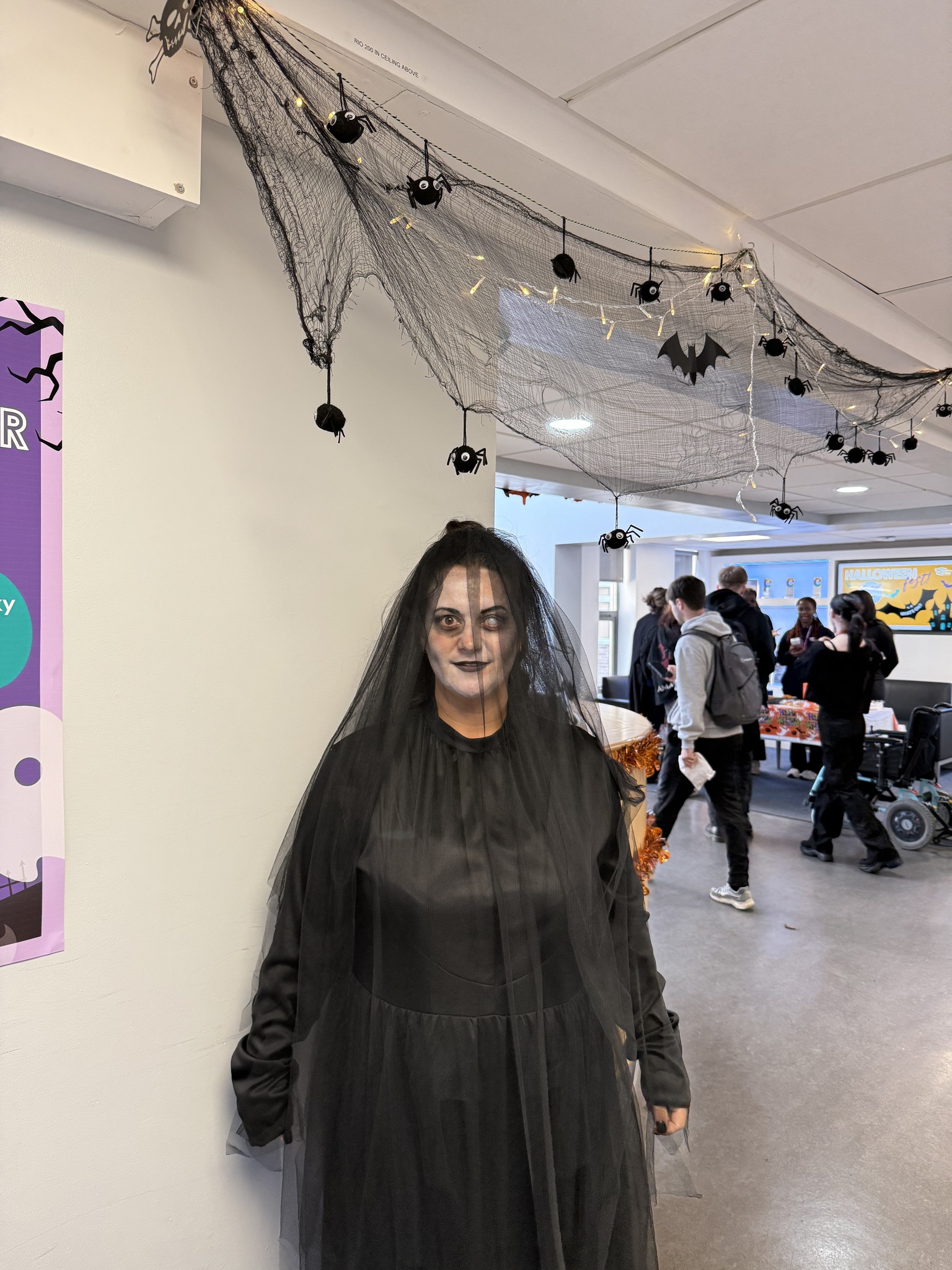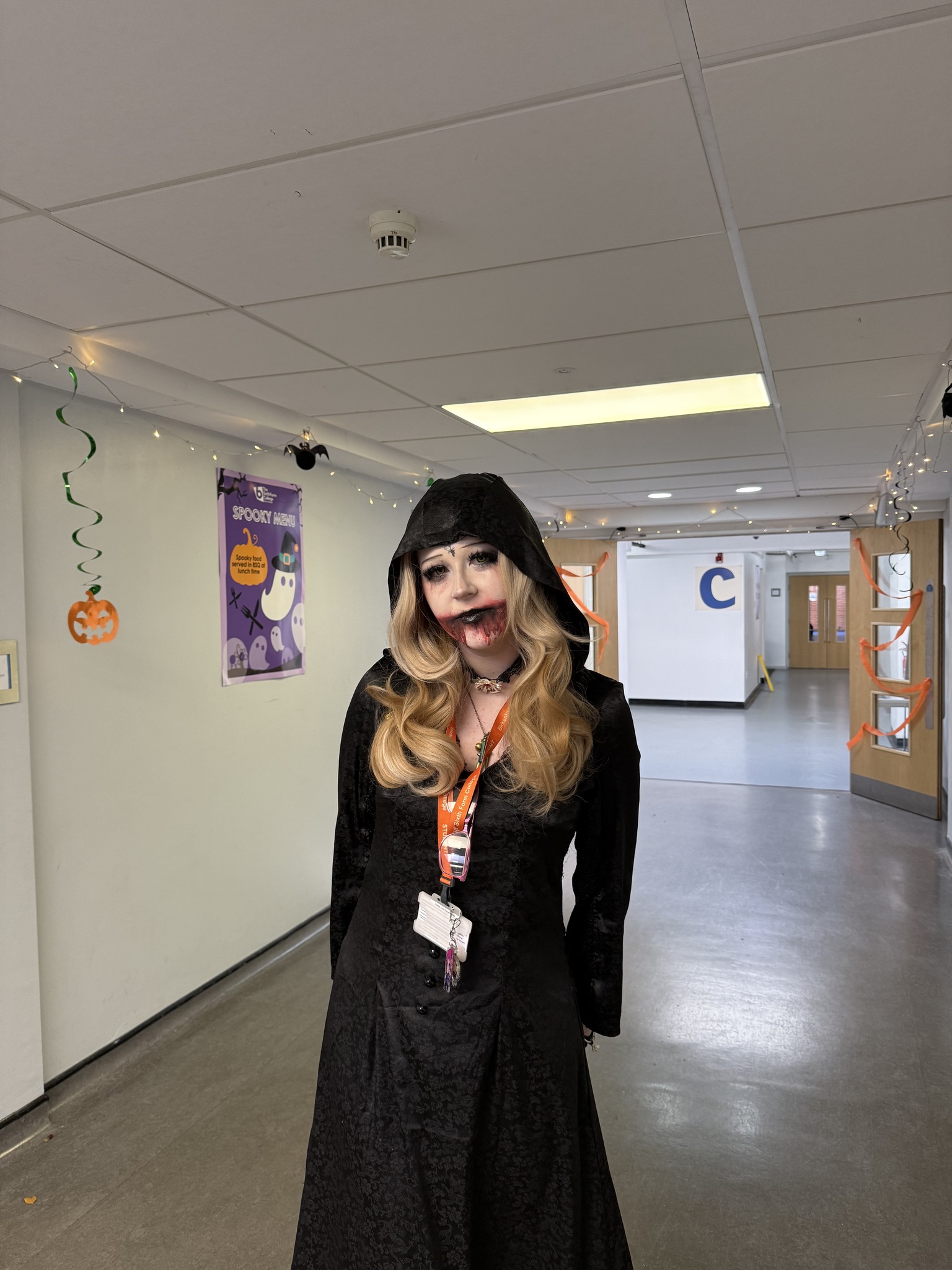 From a fang-tastic cake sale and glow-in-the-dark sports to a spooky Kahoot quiz, themed lunch in 8SQ, and even a haunted escape room, the College was buzzing with eerie energy throughout the day. Staff and students went all out with their costumes, with appearances from The Grinch, Sally from The Nightmare Before Christmas, Beetlejuice, Frankenstein’s Bride, and many more creative characters wandering the corridors.