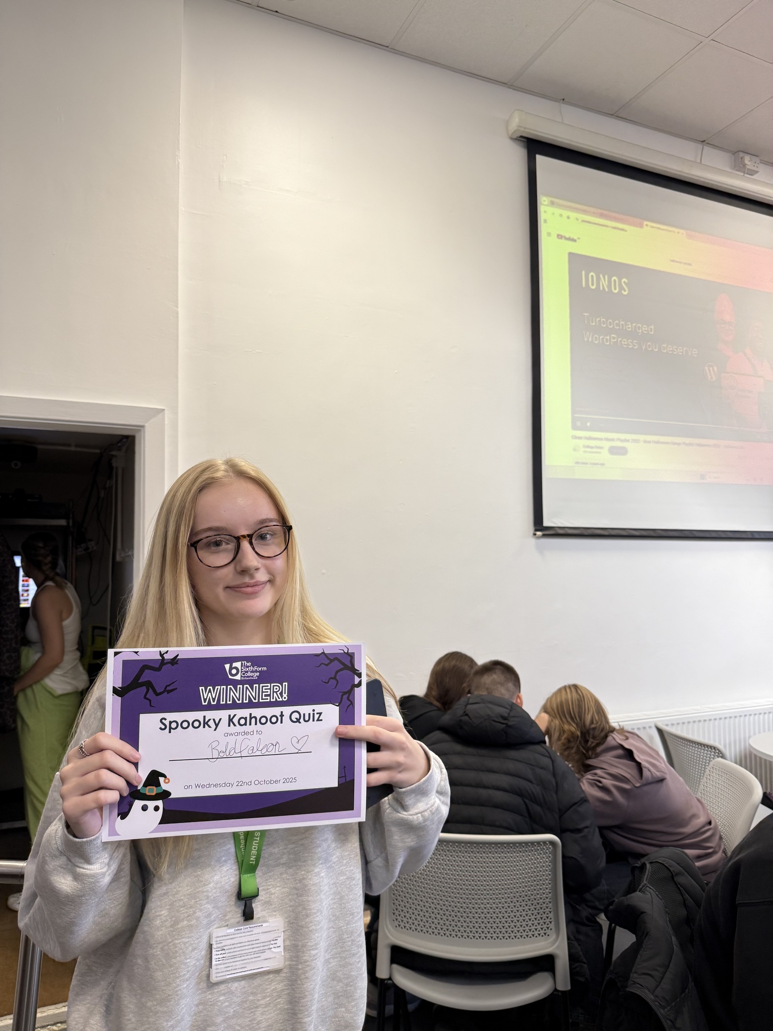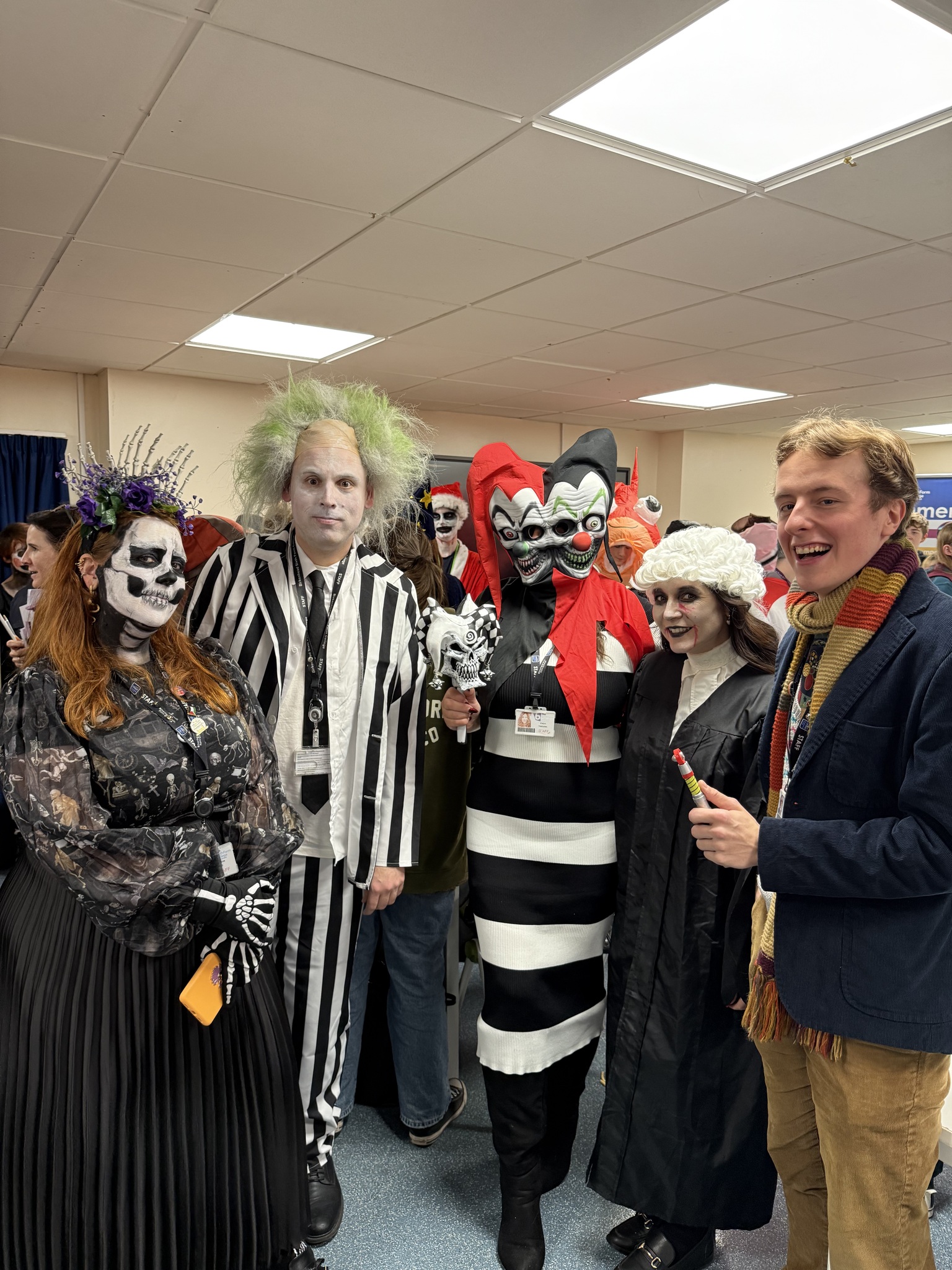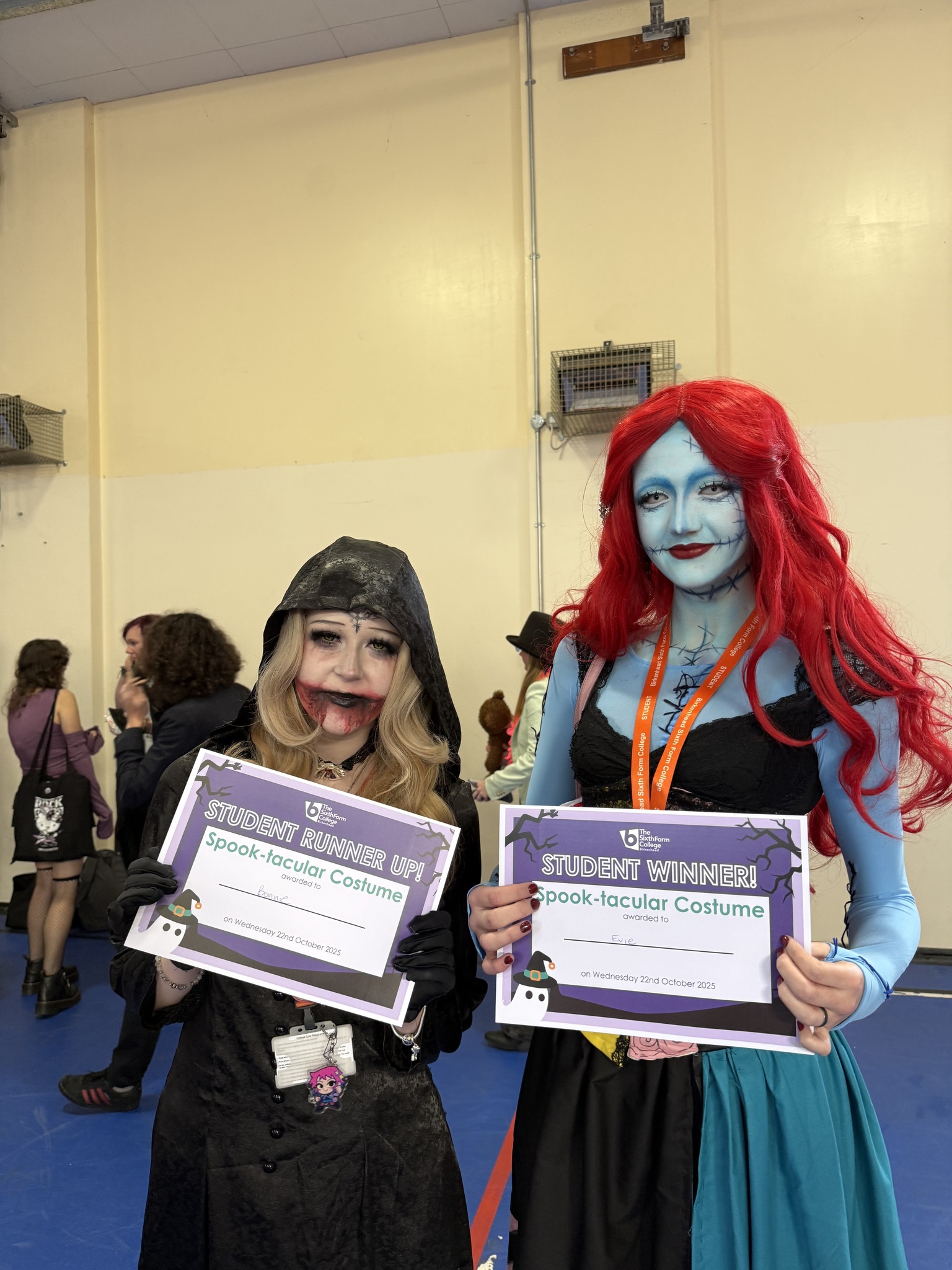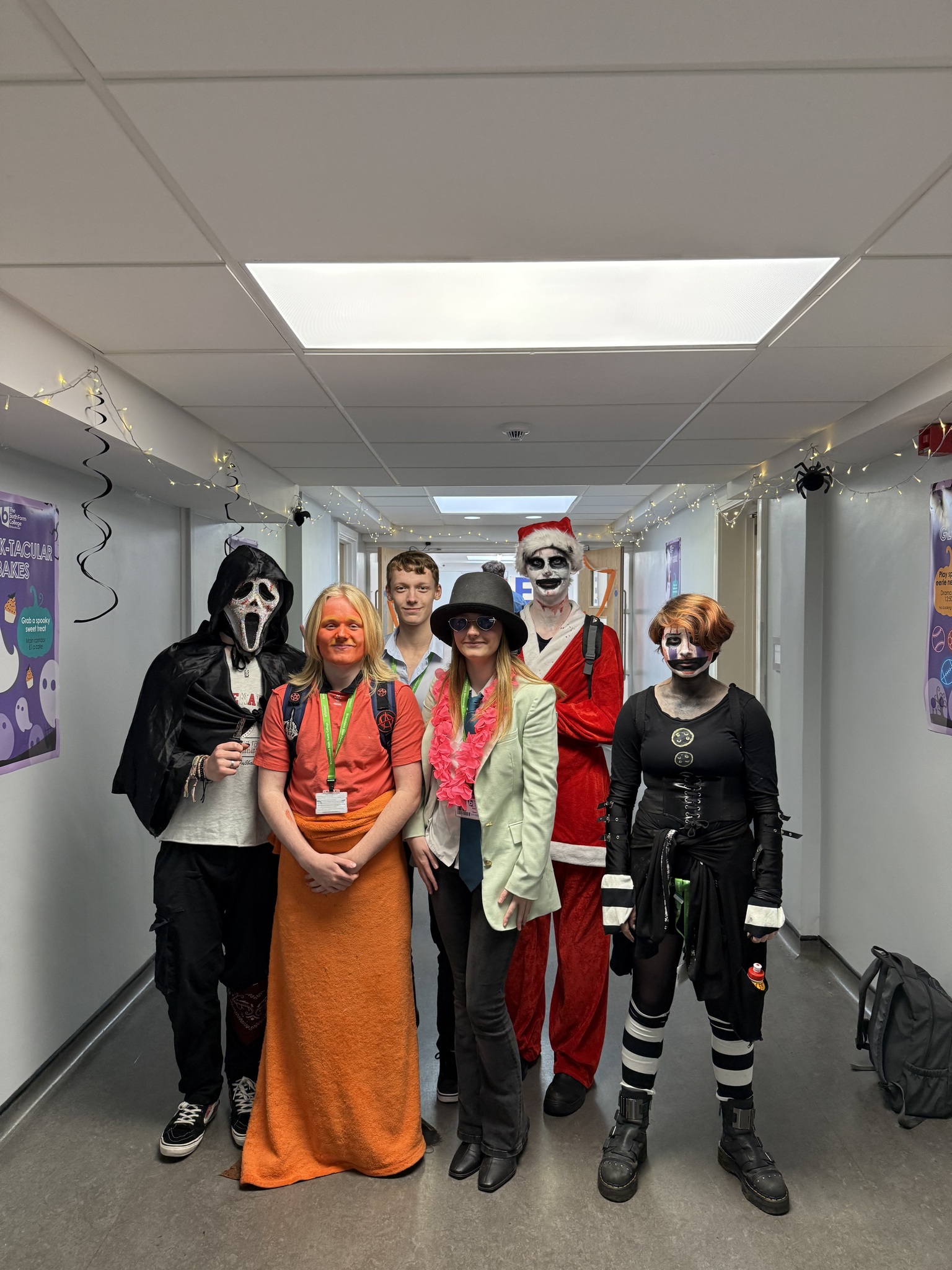From a fang-tastic cake sale and glow-in-the-dark sports to a spooky Kahoot quiz, themed lunch in 8SQ, and even a haunted escape room, the College was buzzing with eerie energy throughout the day. Staff and students went all out with their costumes, with appearances from The Grinch, Sally from The Nightmare Before Christmas, Beetlejuice, Frankenstein’s Bride, and many more creative characters wandering the corridors.